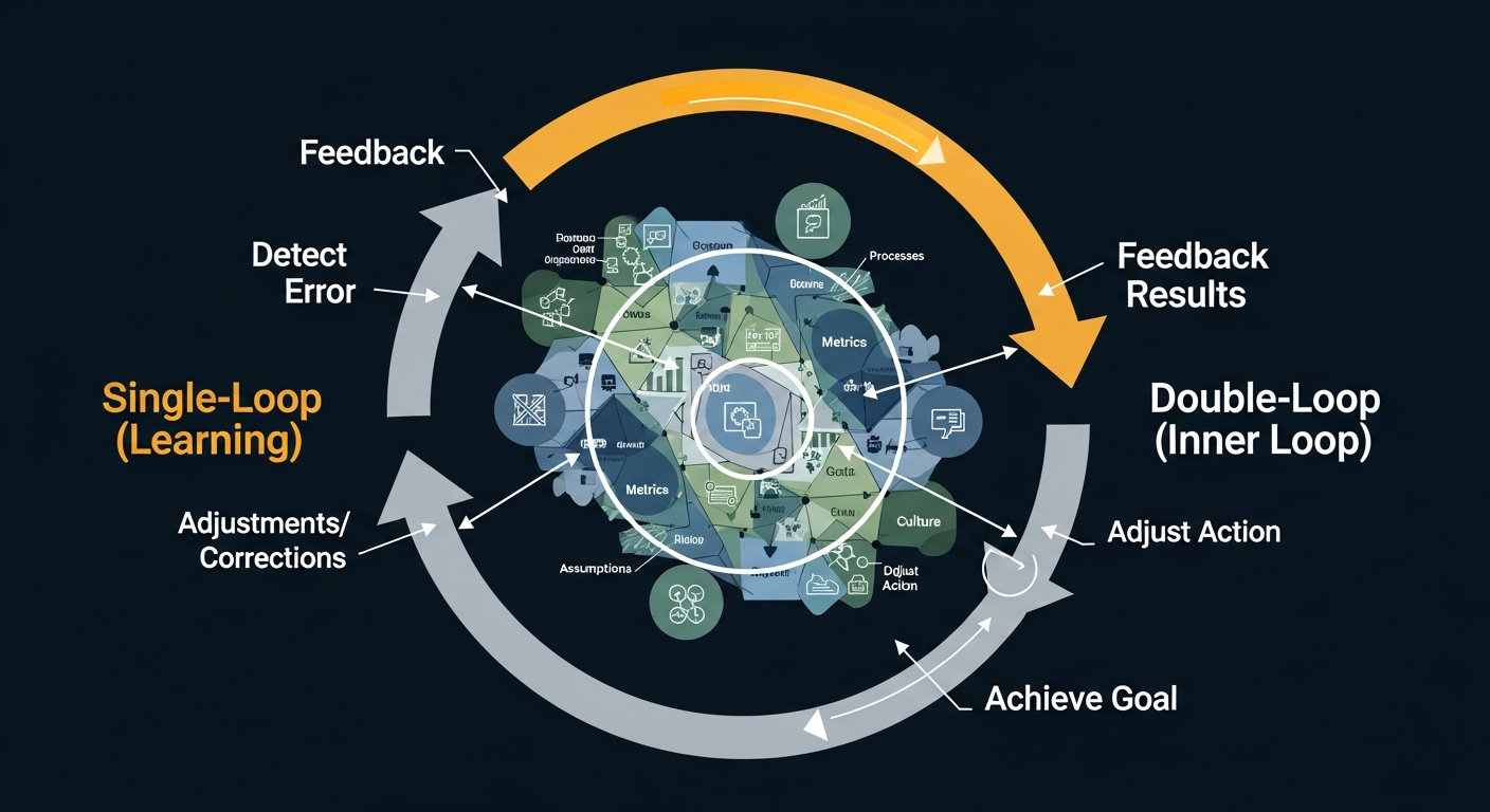 Single-loop learning is akin to a thermostat. When the room gets too cold, the thermostat registers the deviation from the set temperature and kicks on the heater. The system learns to maintain a specific condition without questioning the fundamental setting itself. In an organizational context, this means detecting and correcting errors to maintain existing goals, policies, and assumptions.